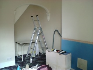 。後は、何色のペンキにするか、もしくはデザイン壁紙を貼るか、それとカーペットはどうするか、暖炉の設置はどうするか、などなどダンカンと相談(ダンカンの好み