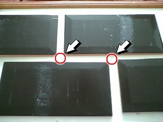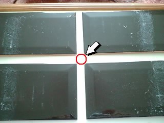 並べて貼る場合は、十字スパイサーを使います。赤いマルの所にスパイサーを使い、タイルを均等に固定する役目を持っています。でも私達は上の写真