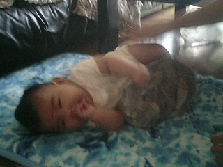 姪っ子とビビちゃん。ビビちゃんは噛まない良い子なので、赤ちゃんにも最適な遊び相手