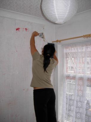 。最初はペンキを塗れば良いと思っていましたが、壁紙の状態が非常に悪いのではがすことにしたのです。実はお義姉さんも1年前に家を買ったばかり