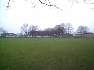 家を出発してから45分。スポーツセンター(遠くに見える茶色の建物)到着です