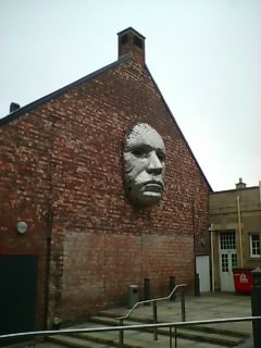ライブ会場というよりも、小さな市民会館といった感じ。外観は不気味で、銀色の人の顔が!!