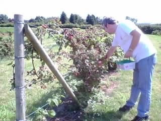 。それはさておき、早速収穫へ!ダンカンはカゴを持ってラズベリー畑へ、私は苺畑へ~